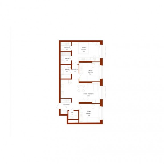Трехкомнатная квартира №189