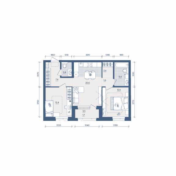 Двухкомнатная квартира №206