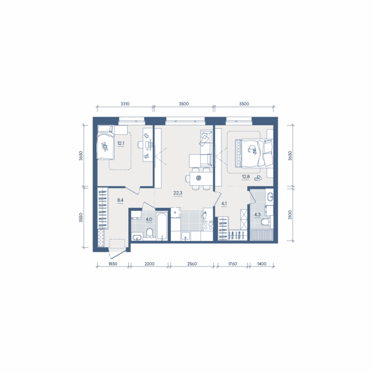Двухкомнатная квартира №209