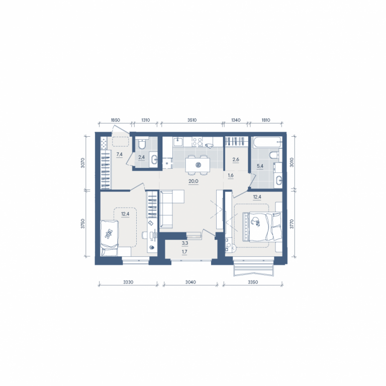 Двухкомнатная квартира №224