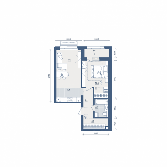 Двухкомнатная квартира №228