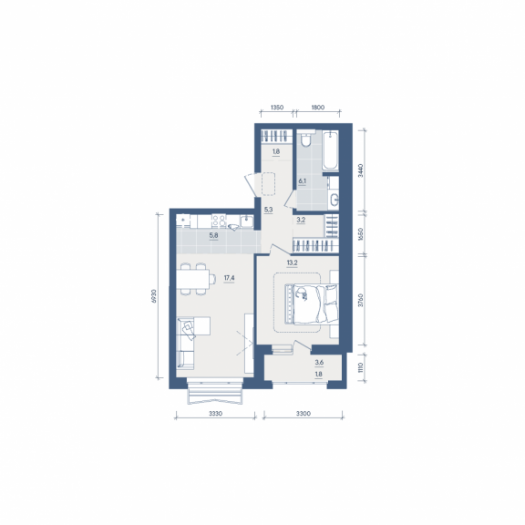 Двухкомнатная квартира №265