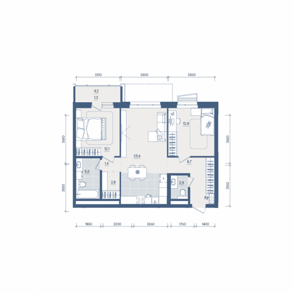 Двухкомнатная квартира №313