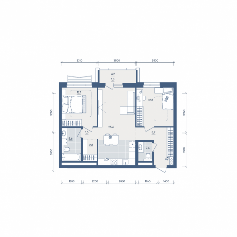 Двухкомнатная квартира №331