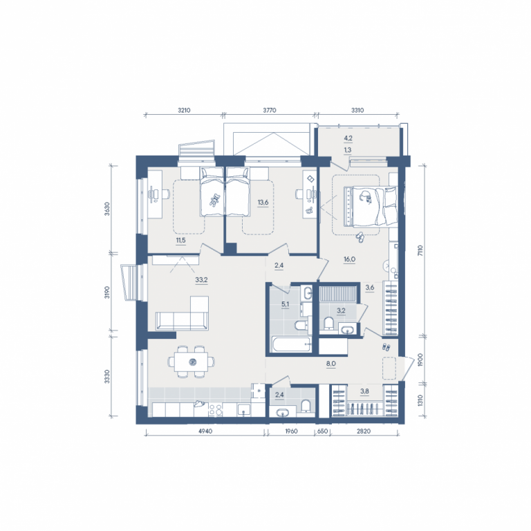 Трехкомнатная квартира №220