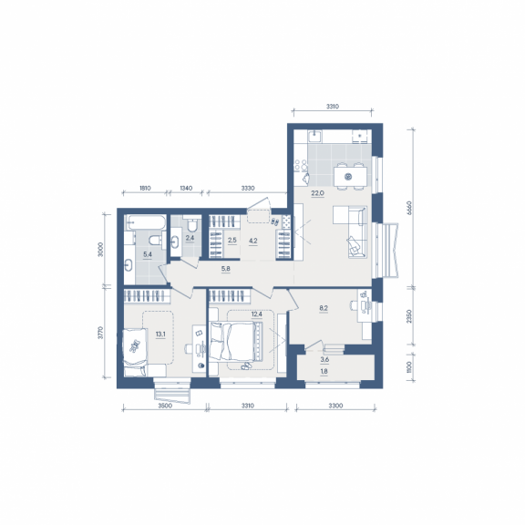 Трехкомнатная квартира №276